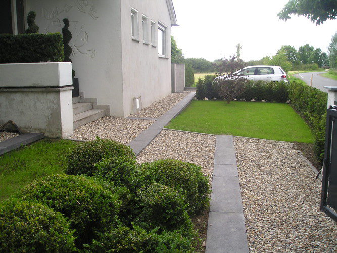 Verder is er veel buxus overgebleven uit de oude situatie, en hebben deze veelal als massieven weer hergebruikt. Evenals de diverse Rhododendrons.