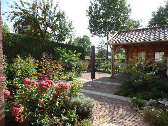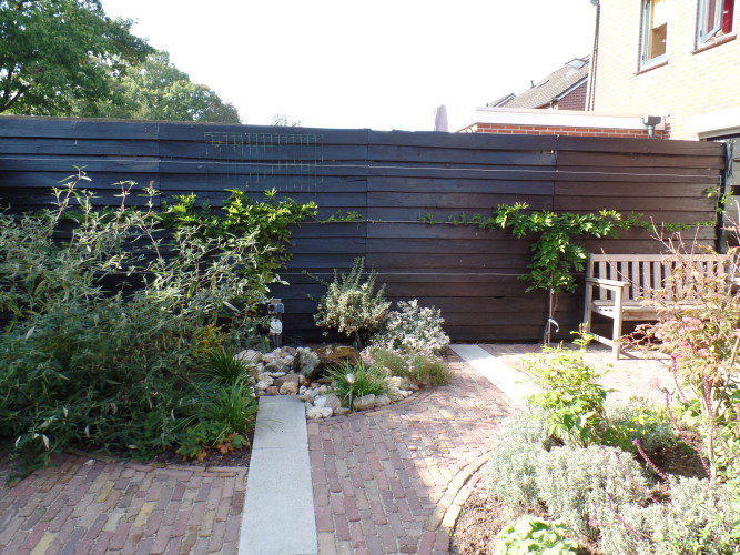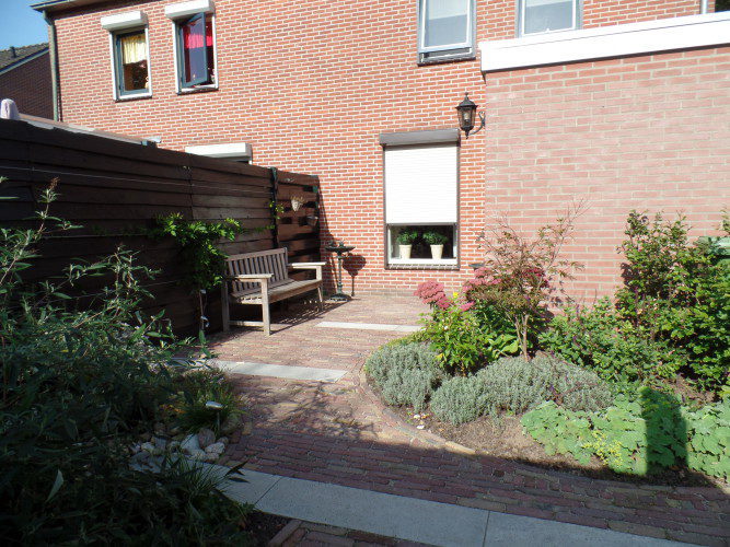 In deze kleine tuin hebben we een bestrating toegepast van oude gebakken waalformaten,